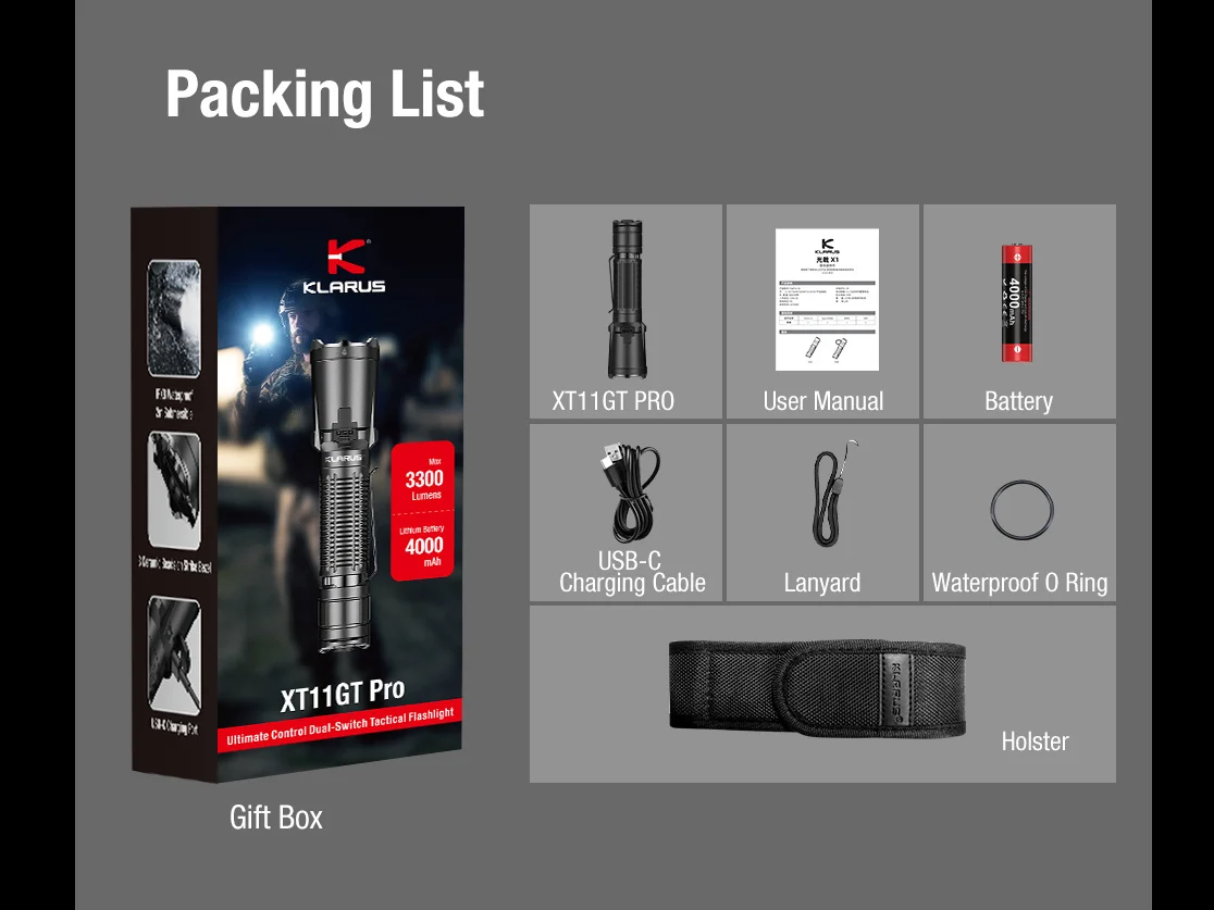 Poľovnícka baterka LED KLARUS XT11GT Pro V3 (3300lm) + (18GT-40 Bat.)